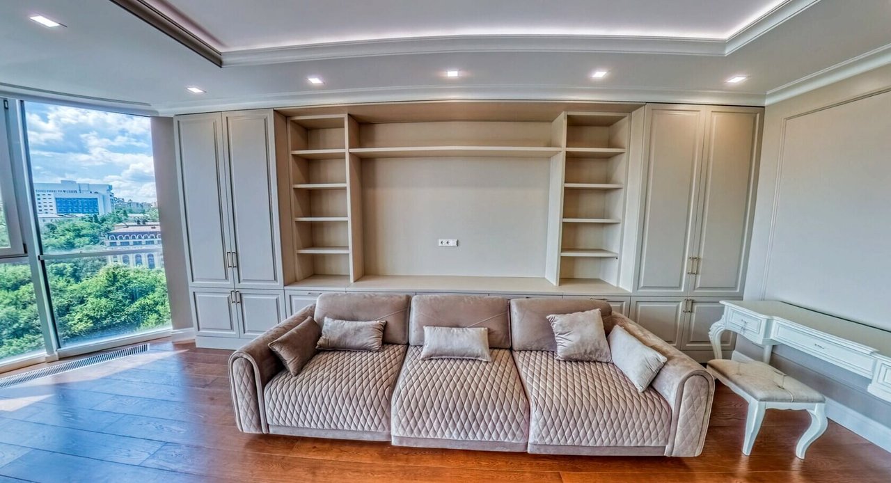 Сделали кап.ремонт, разделили квартиру на отдельные зоны: кухню с островом, рабочий кабинет, гардеробная. Работа была на протяжении 4 месяцев, но итог получился на очень высоком уровне. Гардеробные - удобные. Все разработано под наши запросы и пожелания. Прораб все лично контролировал. Мастера молодцы, делали все четко и по проекту.